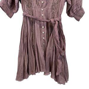 Free People Purple Button Front 3/4 Sleeve Lace Dress Womens Size Small Boho