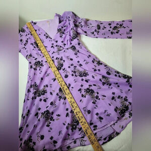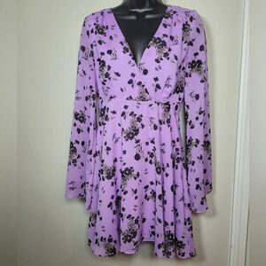 Free People Purple Floral Lilou Wisteria Chiffon Bell Sleeve Floral Fairy Boho Dress sz S