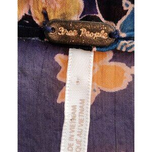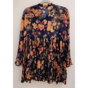 Free People Purple Floral Pleated Sheer Button Up Blouse Tunic Top Dress sz XS
