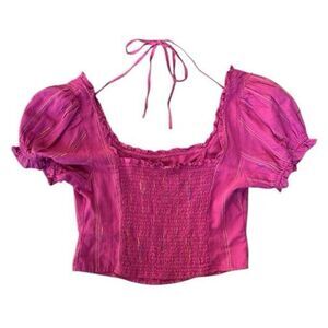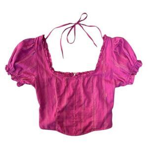 Free People Purple Serotonin Faux Corset Puff Sleeve Striped Top NWT Size Small