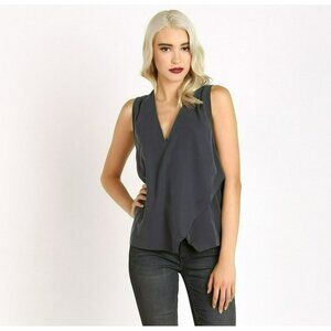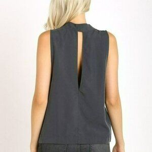 ** This top is the perfect piece for work or play with a v neckline, cutout at back and uneven hemline. **