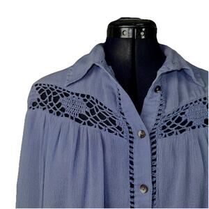 Free People Purple Tunic Blouse XS Long Sleeve Button Down Casual Office Crochet