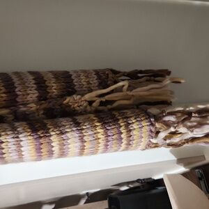 Chunky knit scarf with fringe. Features purple and cream tones. Stylish and warm accessory. Color Ivory Multi Combo. New with tags.