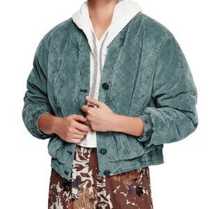 Free People Quilted Bomber Jacket Velour Main Squeeze Boho Indie Crop Coat