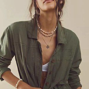 Free People Quinn Coveralls Jumpsuit Button Up Washed Pine