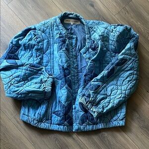 Homespun charm animates a denim jacket textured in cozy quilting and cut to a waist-skimming length.