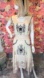 Chic asymmetrical dress with lace details. Features intricate black embroidery on a cream base. Perfect for a stylish statement.