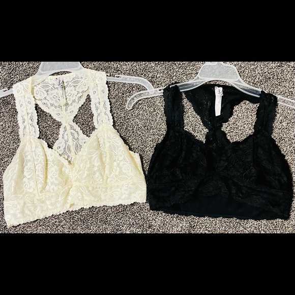 Free People racerback black and beige/white bralette. $12 each