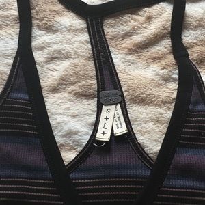 Free People Cute Racerback Tunic. New without tag......never worn...Side slits...20” pit to pit, length 35”, black, navy, mauve stripes. Size large