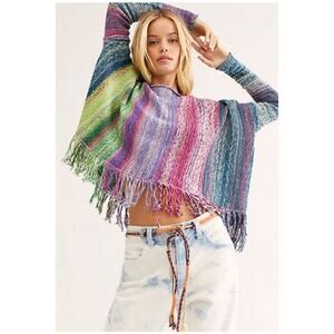 Free People Radiate Pullover Fringe Sweater Top in rainbow brite