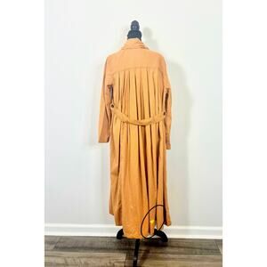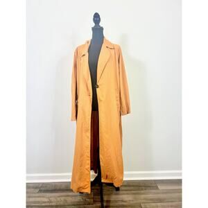 Free People Rae Longline Duster Coat in Brown Size XS Button Front Linen Blend