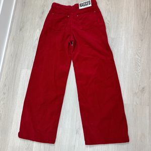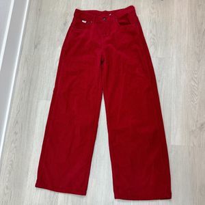 Free People Ragged Priest Corduroy Wide Leg Jeans Size 26 Red NEW