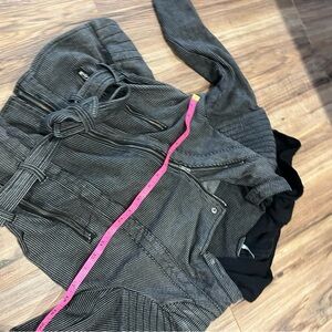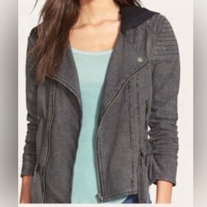 Free People Railroad Stripe Knit Hooded Moto Jacket