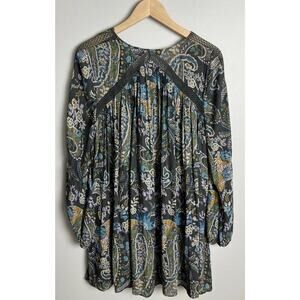 Free People Rain Or Shine Paisley Boho Tunic Dress with Pockets Size Medium Wm’s