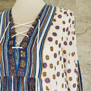 Free People Rain Shine Printed Lace-Up Swing Dress