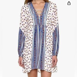 Free People Rain or Shine lace-up Swing Dress