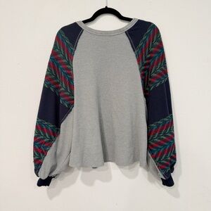 Free People Rainbow Dreams Aztec Balloon Sleeve Oversized Top XS