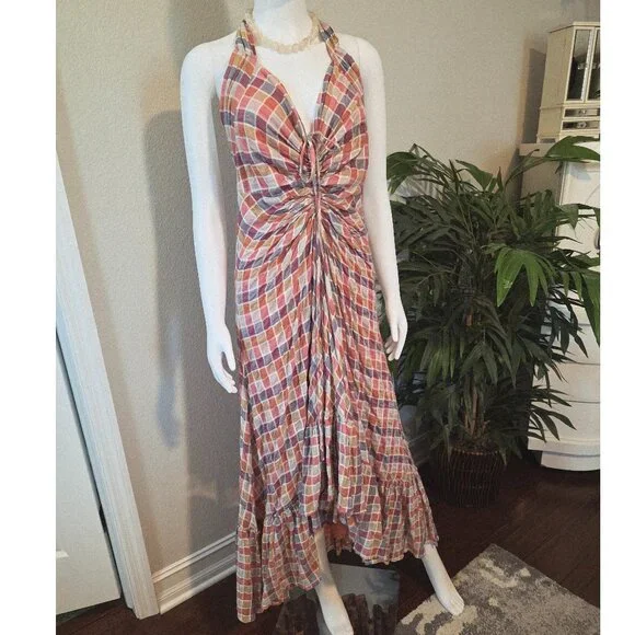 Free People Rainbow Dreams Plaid Dress in Pink/Combo