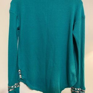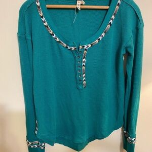 Free People|| Rainbow Thermal Long Sleeve W/ Embroidery. Worn Once, Green