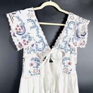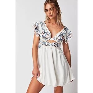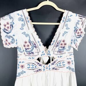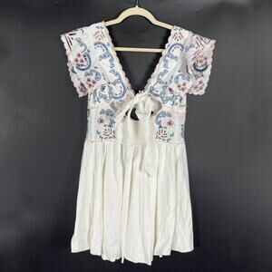 Free People Rambling Roads Mini Dress White Embroidered Floral Cutout Sz S