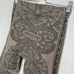 Free People Rare Boho Paisley Print Olive Green Knit Leggings Size XS