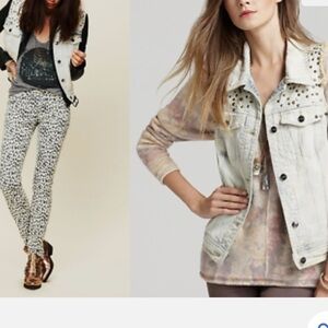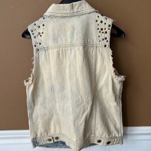 Free People Rare Denim Studded Distressed Vest Coastal Cowgirl Size M Festival