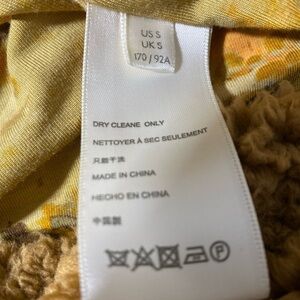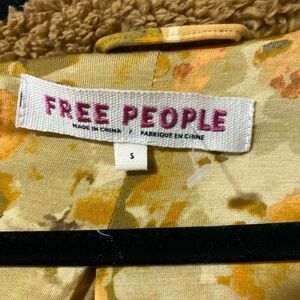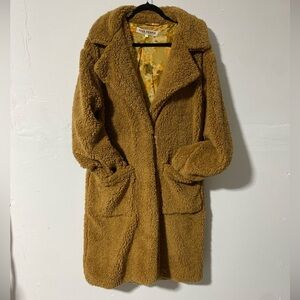 Free People Rare Mongolian Brown Faux Fur Shag Long Coat Floral Jacket Sz Small