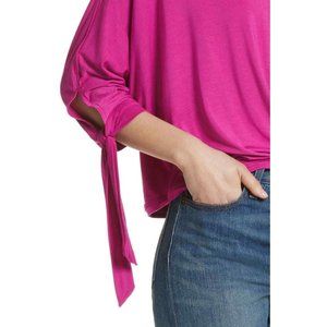 Free People Raspberry Keepin' On Tie Sleeve Crop