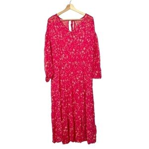 Free People Raspberry Red Wallflower Midi Long Sleeve Dress