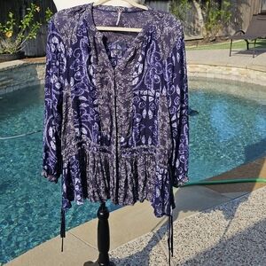 Free People Ratio Print Tunic Indigo Combo nwot blouse s/p