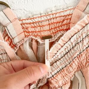 Free People | Raw Hem Striped Halter Crop Top Cotton Linen Blend