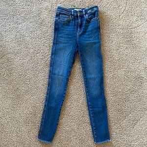 These are actually the best skinny jeans ever they just don’t fit me anymore. Worn a couple of times but no signs of wear! Extremely stretchy and comfortable and high waisted very flattering