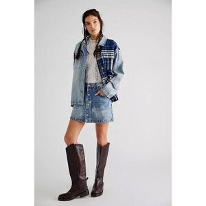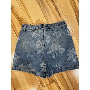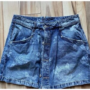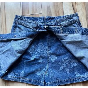 So fun in a skort silhouette, this classic denim mini is featured in a relaxed, button-up silhouette with pointed hem design and washed floral pattern for added dimension.