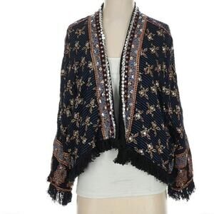Free People Ray of Light kimono jacket fringe sequin boho XS oversized black