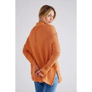 Free People Raymond Thermal Waffle Knit Oversized Pullover Size XS Womens in Ora