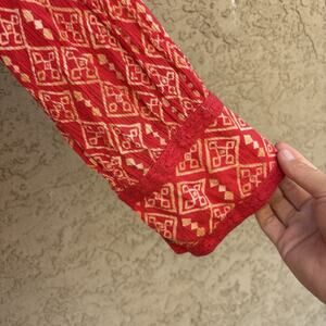 Free People Red And Orange Mini Dress Distressed Bohemian Sleeve, Medium