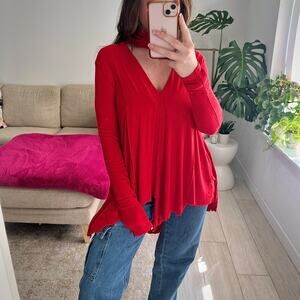 Free People Red Asymmetrical Cutout Sweater Size Medium. Excellent condition, like new. Dark red. Cutout detail at neck with choker style neckline. Long Sleeve. Ribbed knit. Relaxed fit. Long length.