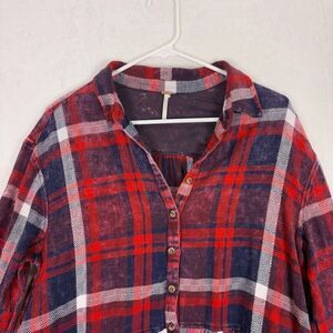 Excellent condition Free People Red & Blue Plaid Collared Button Front Long Sleeve Shirt