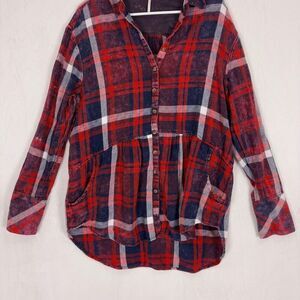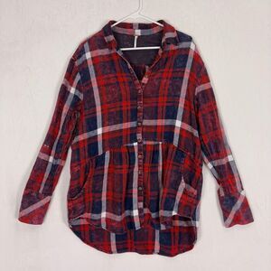 Free People Red & Blue Plaid Collared Button Front Long Sleeve Shirt Women's Med