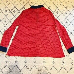 Free People Red & Blue Tiny Horse Print Oversize Top Blouse Size Small