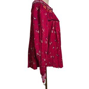 Free People Red Button Front Relaxed Fit Boho Peasant Top