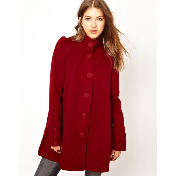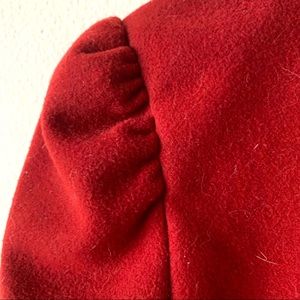 Heavy red coat from free people with pleats and button closure. Normal wear with one sleeve button cover off (extra is attached to be replaced), see photos.