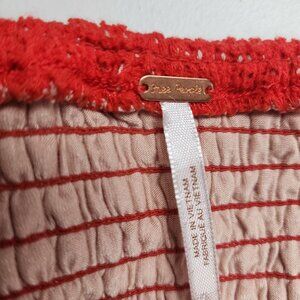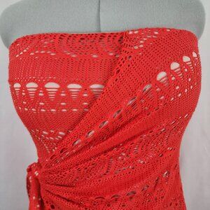Free People Red Crochet Strapless Dress With Tie Detail Size L