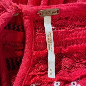 Free People Red Embroidered Blouse
