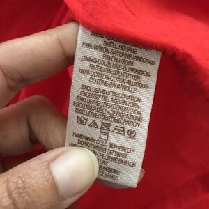 The size tag is missing, selling as medium. There is a tonal mark on the cuff of one sleeve, see pics.