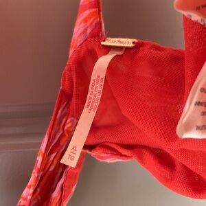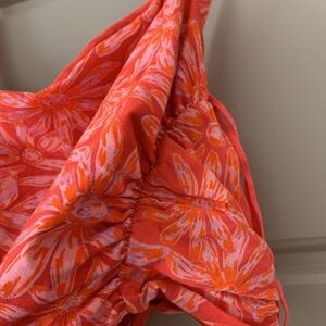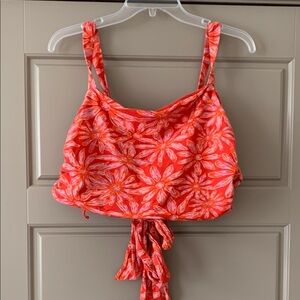 Vibrant red crop top with floral pattern. Square neckline. Sleeveless design. Perfect for casual outings.