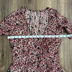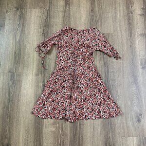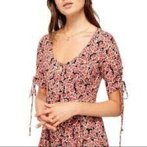 Free People Red Floral Lace Up Summer Short Dress Sz XS
