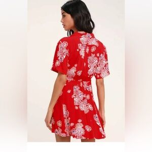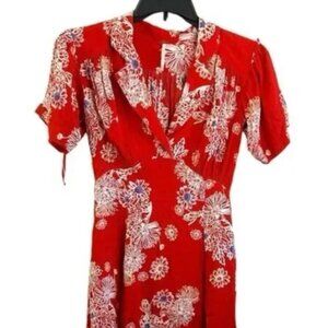 Free People Red Floral Mini Dress Fit & Flare Boho Hawaii XS