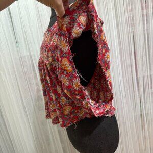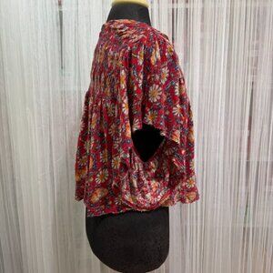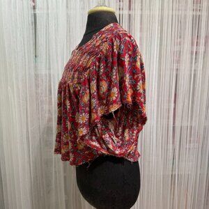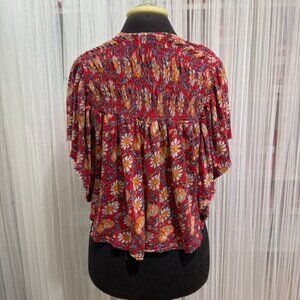 Free People Red Floral Smocked Boho Peasant Top Blouse Women’s Size Small