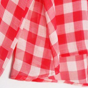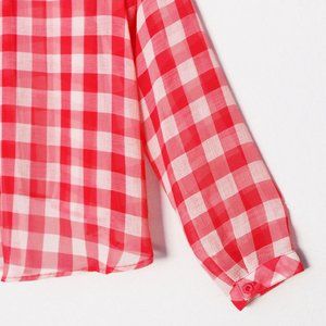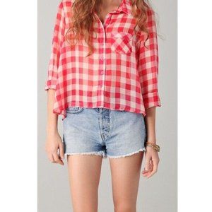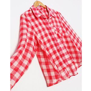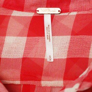 Free People Red Gingham Plaid Semi Sheer Flowy Button Front Shirt Size S Airy